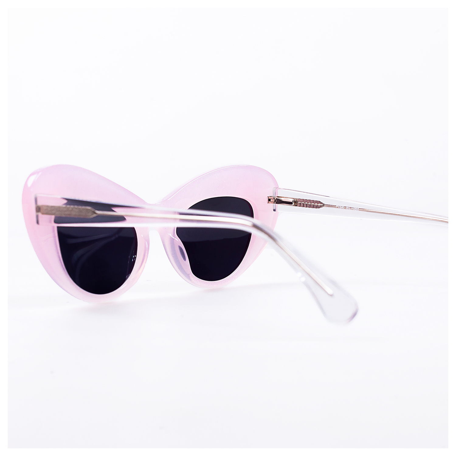 Material: Acetato de celulosa rosa ligeramente escarchado y brazos transparentes.